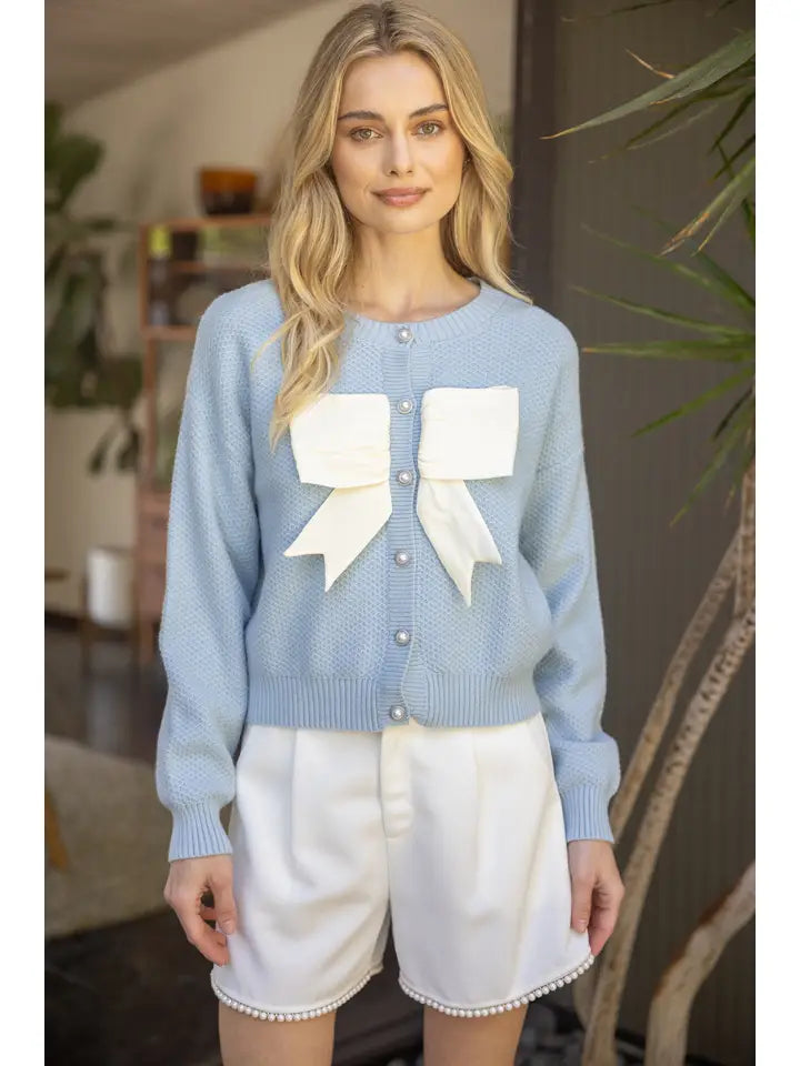 Contrast Bow Sweater Cardigan