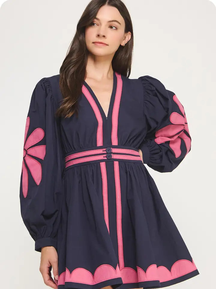 Flower Patch Contrast Embroidery Mini Dress